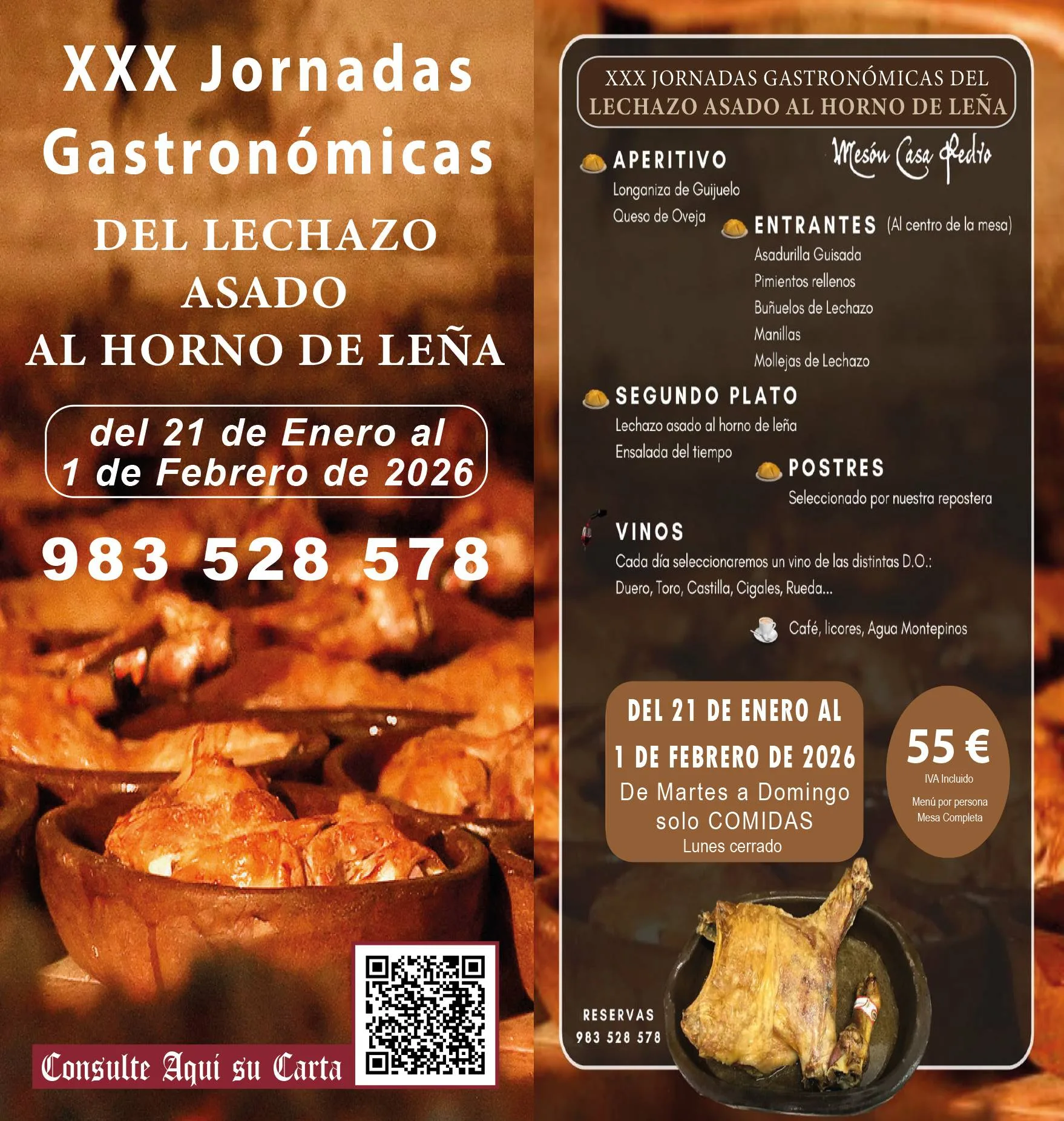 Como cada año, y ya van 30, Mesón Casa Pedro en Herrera de Duero, organiza sus XXX Jornadas Gastronómicas del Lechazo Asado al Horno de Leña.